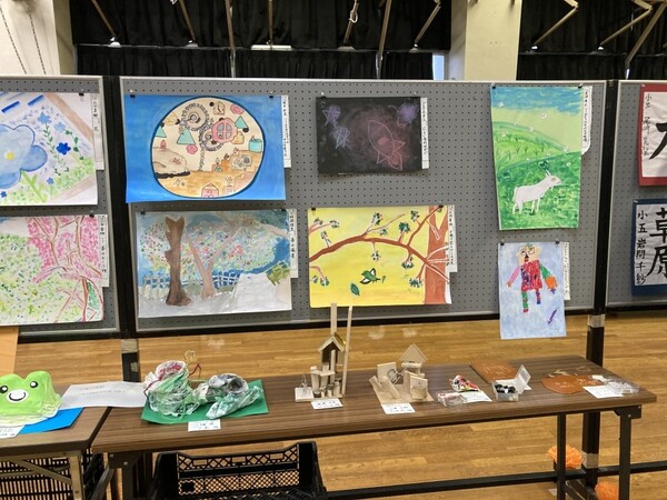 三室小学校からは、代表の子どもたちの図工の作品が展示されていますので、ぜひ足をお運びください。
