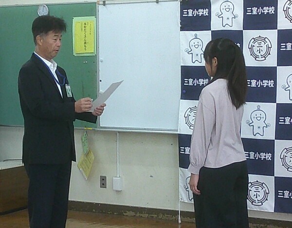 代表委員の子どもたち一人ひとりには、校長先生から直接「任命証」が手渡されました。
