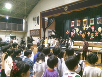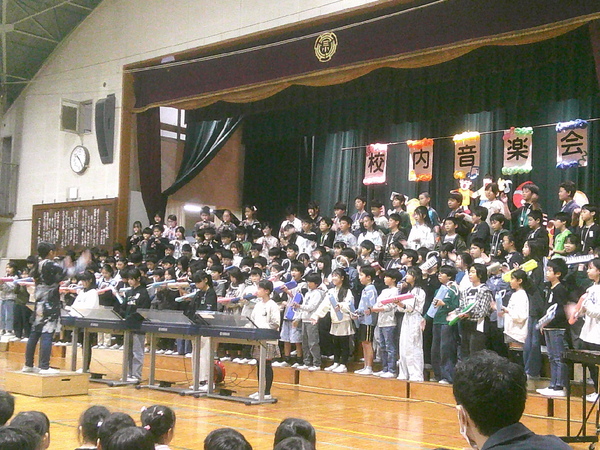 トリの6年生は、「さすが最高学年」という演奏と歌声を響かせてくれました。『カイト』の合奏では、たくさんの楽器の音色が重なり合いながらメロディーを美しく奏でていました。また、合唱曲『COSMOS』は、のびやかな高音と美しいハーモニーに思わず圧倒されました。前方で見ていた1年生が、その歌声に感涙していたのが印象的でした。